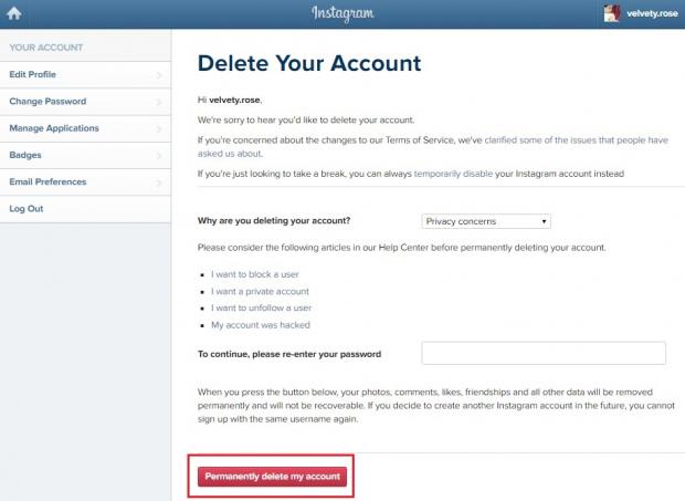 Bước 3: Nhập mật khẩu tài khoản của bạn, sau đó chọn Premanently delete my account (Xóa vĩnh viễn tài khoản của tôi).