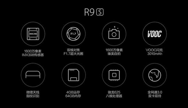 Về cấu hình, tất nhiên là phiên bản Plus có cấu hình mạnh mẽ hơn chút và tất nhiên giá bán cũng sẽ cao hơn rồi. Cụ thể, OPPO R9s được trang bị màn hình 5.5 inch với độ phân giải Full HD. Bên trong là chip xử lý Snapdragon 625 với chip đồ họa Adreno 506, RAM 4 GB, bộ nhớ trong 64 GB. Ngoài ra, OPPO R9s được sử dụng viên phim 3.010 mAh, có sạc siêu nhanh VOOC của hãng và được cài sẵn hệ điều hành Android 6.0.1 giao diện Color OS 3.0