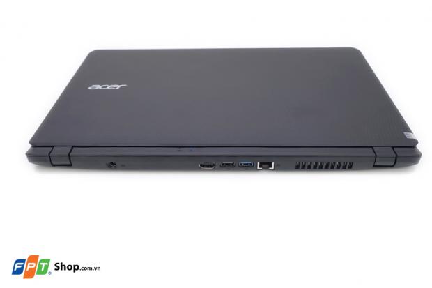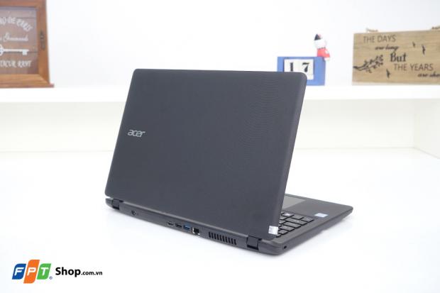 Toàn bộ vỏ máy được hoàn thiện nhựa với các đường vân đen nổi bật giúp tăng độ ma sát nhưng lại dễ bám bụi bẩn.Các cổng kết nối trên ES 15 được Acer đặt chủ yếu ở cạnh phải và cạnh sau máy. Cụ thể