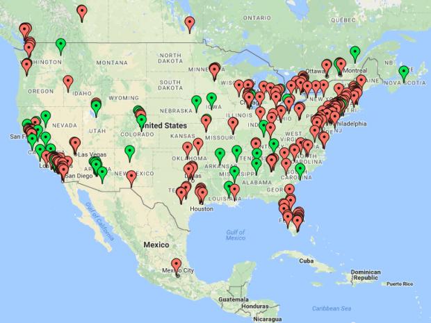 Biểu tượng màu xanh là các cửa hàng đang có bán iPhone 7 Plus Jet Black