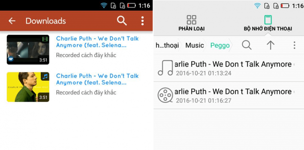 Bạn có thể tìm các file vừa tải ở mục Music > Peggo (trong thẻ nhớ hoặc bộ nhớ trong của máy) sau đó khởi chạy file đó một cách bình thường bằng các phần mềm nghe nhạc hoặc video.