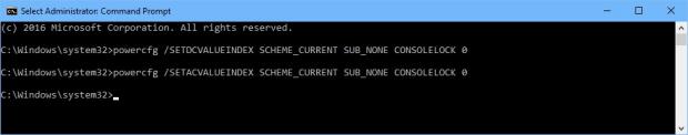 powercfg /SETDCVALUEINDEX SCHEME_CURRENT SUB_NONE CONSOLELOCK 0