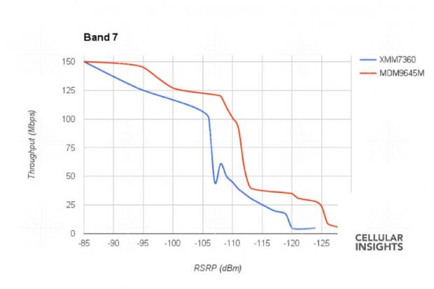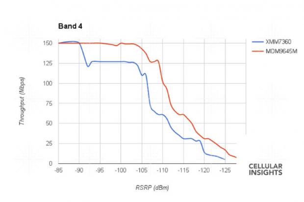 Mới đây, các thử nghiệm từ Cellular Insights cho thấy model 4G của Qualcomm (MDM9645M) bắt sóng mạnh hơn so với modem của Intel (XMM7360) trong cả 3 băng tần thử nghiệm là 4, 7 và 12.