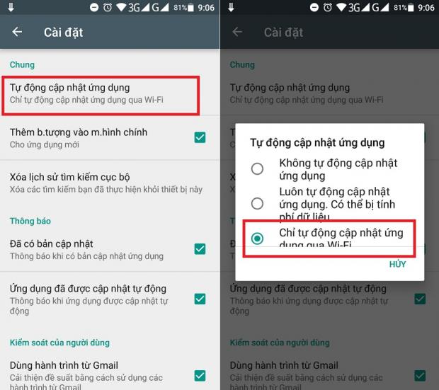 4. Thiết lập chỉ cập nhật ứng dụng khi kết nối wifi