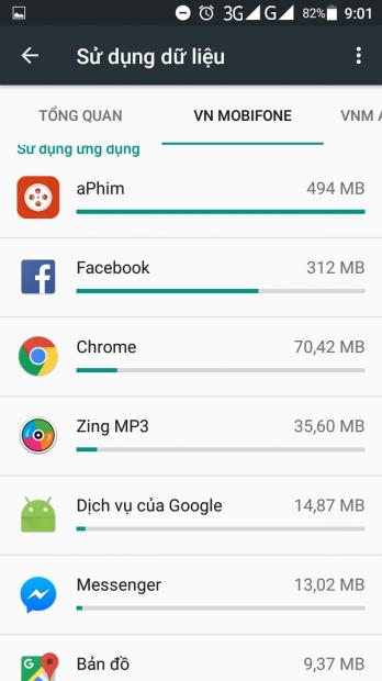 Trong phần “Sử dụng dữ liệu” khi kéo xuống dưới bạn có thể thấy được những ứng dụng sử dụng dữ liệu mạng và mức độ tiêu tốn sẽ được sắp xếp từ cao xuống thấp.