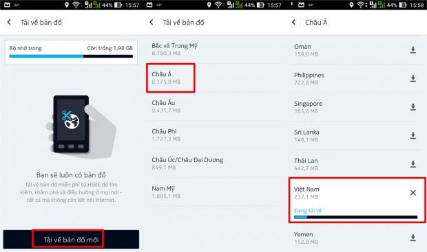 Điểm nhất nổi bật của HERE WeGo là cho phép người dùng tải các gói bản đồ dẫn đường theo từng khu vực để sử dụng offline (ngoại tuyến). Chẳng hạn, người dùng có thể tải gói bản đồ dẫn đường tại Việt Nam với dung lượng gần 240 MB hoặc bản đồ dẫn đường tại Thái Lan gần 450 MB.