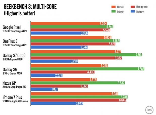 Được trang bị con chip Qualcomm Snapdragon 821 cùng 4 GB RAM tuy nhiên không hiểu sao Google lại khóa xung nhịp của con chip này ở mức 2.15 GHz. Tương đương với xung nhịp của 820 nên hiệu năng mang lại không thực sự ấn tượng khi so với những Smartphone đầu bảng khác. Tuy nhiên theo mình thì ngoại trừ việc speed test ra, hiệu năng của những sản phẩm này đều đã quá đủ đáp ứng tất cả những nhu cầu của người dùng trên một chiếc điện thoại.