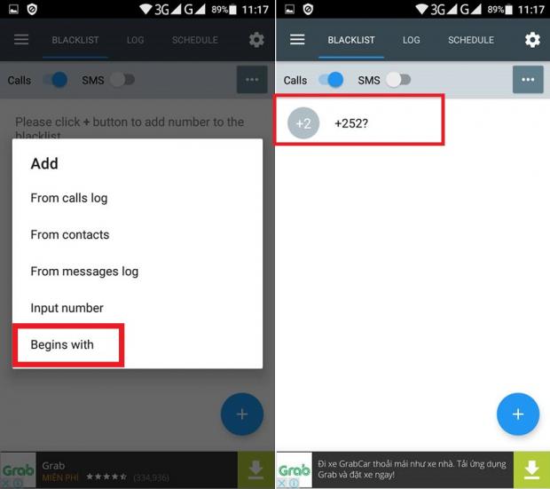 Một số tùy chọn sẽ hiện ra, ở đây mình sử dụng Begins with tức là chặn những số bắt đầu bằng một đầu số tùy chọn. Các cuộc gọi từ nước ngoài gần đây chủ yếu đến từ các đầu số +252, ngoài ra còn một số đầu số khác như +231, +232, người dùng chỉ cần thêm những đầu số này vào 'danh sách đen' Backlist là những số bắt đầu bằng những số này sẽ bị chặn. Một số máy không hiển thị dạng +252 mà hiển thị dạng 00252 thì người dùng có thể thêm cả số này cho an toàn.