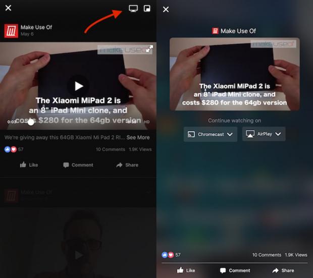 Facebook đang tiến hành thử nghiệm tính năng phát video livestream trên TV. Cụ thể là bạn phải có thiết bị Chromecast hoặc Apple TV. Để xem video livestream Facebook trên TV, bạn chỉ cần mở video bạn muốn xem và nhìn lên góc phải trên cùng. Bạn sẽ thấy một biểu tượng TV nho nhỏ. Nhấp vào đó để “phóng” video này lên TV bằng cách sử dụng Chromecast hoặc Apple TV (thông qua AirPlay).