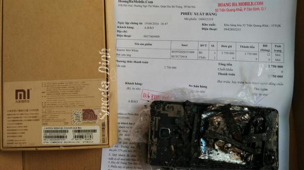 Theo hình ảnh hóa đơn được đăng tải, chiếc Xiaomi Mi4 này là hàng chính hãng, mới 100% được anh mua tại hệ thống cửa hàng Hoàng Hà Mobile vào tháng 4 năm nay. Ngay sau khi sự việc xảy ra anh này đã liên hệ với đơn vị bán hàng, tuy nhiên anh không đã không nhận được bất kì sự hỗ trợ nào từ đơn vị trên.