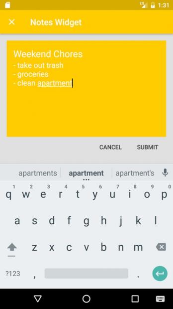 Nói về những ứng dụng ghi chú note gọn nhẹ, chúng ta phải kể đến Google Keep. Nhưng đây không phải là ứng cử viên duy nhất. Nếu bạn muốn một thứ gì đó còn gọn nhẹ hơn Google Keep, hãy thử Notes Widget. Chỉ đơn giản là bạn sẽ đính những mẫu ghi chú lên màn hình chính smartphone, không có thêm bất kì tính năng rườm rà nào khác. Hiện tại ứng dụng này chưa hỗ trợ tại Việt Nam, khoảng vài tuần nữa chúng ta mới có thể sử dụng được. Tuy nhiên nếu bạn muốn tải về, bạn có thể đổi VPN sang Mỹ.