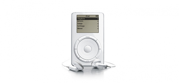 Chiếc iPod đầu tiên lộ diện trước mắt công chúng cách đây đúng 15 năm với giá khởi điểm là 399 USD (khoảng 8.9 triệu VNĐ), máy sở hữu bộ nhớ trong 5GB và cổng kết nối FireWire cho phép đồng bộ dữ liệu nhạc với phong cách thiết kế phím bấm tròn dạng bánh xe có khả năng tương tác rất tốt. Tiếc rằng model iPod đầu tiên này chỉ dành cho người sử dụng Mac.