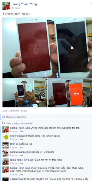 Ngay lập chủ đề về Bphone của Bkav đã nhận được hàng trăm comment cũng như chia sẻ, hầu hết các thành viên trên Facebook đều tỏ ra bất ngờ và thất vọng trước hình ảnh của Bphone.