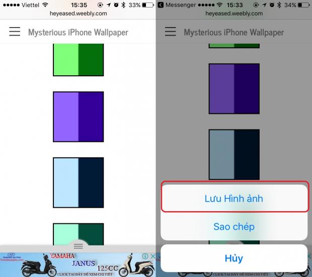 Khi chọn được màu ưng ý, hãy nhấn và giữ lên hình để xuất hiện một trình đơn, chọn Lưu hình ảnh.