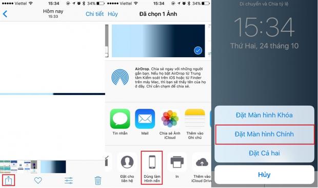 Sau đó hãy tiến hành cài đặt hình ảnh đã lưu vừa rồi làm hình nền của thiết bị bằng cách nhấp vào hình ảnh chọn Dùng làm hình nền > Thiết lập > Đặt màn hình chính.
