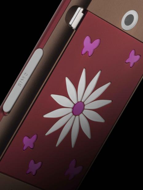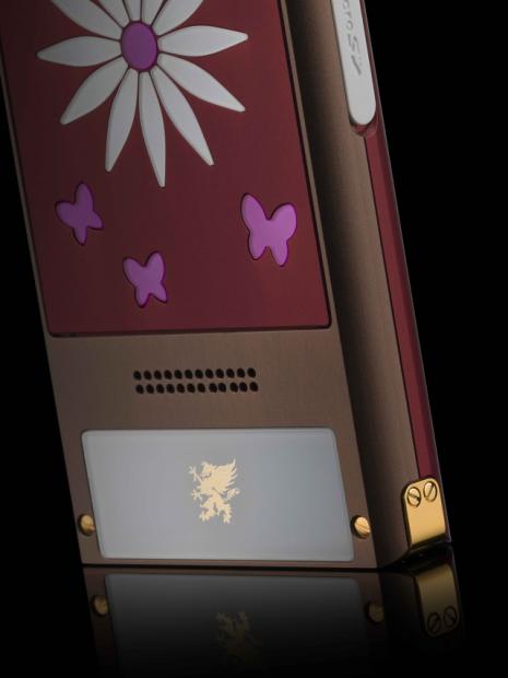 Chủ tịch hãng và là cha đẻ của thiết kế Peter Bonac chia sẻ rằng Fleur chính là sự tôn vinh vẻ đẹp lãng mạn của cuộc sống. Chỉ cần có tình yêu, hoa cũng có thể nở bừng trên kim khí. Ngụ ý này được ông thể hiện rõ nét với những cánh hoa daisy sapphire trên nắp pin điện thoại. Ở trung tâm các cánh hoa là nụ hoa bằng hồng ngọc. Hồng ngọc cũng đồng thời tạo thành các cánh bướm rập rờn như mời gọi quanh hoa.