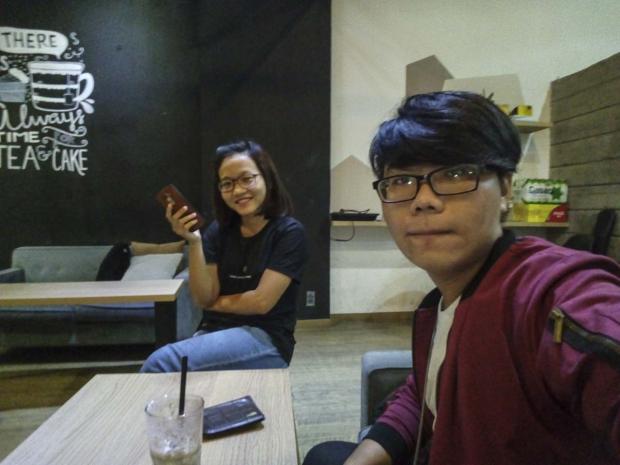 Bù lại khi selfie ở điều kiện thiếu sáng cùng đèn flash trợ sáng tương đối tốt.