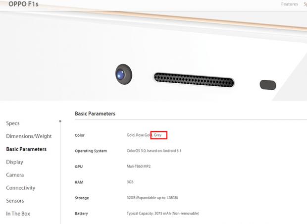 Như các bạn đã biết, OPPO F1s camera chuyên selfie đã xuất hiện tại Việt Nam từ khá lâu, đây là 1 đối thủ mạnh trong phân khúc chảo lửa cùng với các đối thủ khác như Galaxy J7 Prime, HTC One A9s. Và theo thông tin từ OPPO Global xác nhận, OPPO F1s phiên bản màu Grey sẽ được bán ra tại thị trường quốc tế trong thời gian tới. Cụ thể, theo thông tin trên bán hàng của OPPO thì hãng có ghi rõ các phiên bản màu của OPPO F1s như sau: Gold, Rose Gold, Grey.