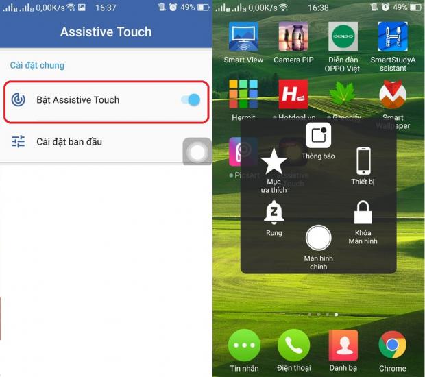Sau khi cài đặt thành công, bạn mở ứng dụng lên và chấp nhận một số quyền truy cập cho nó. Tiếp theo Bật Assistive Touch.