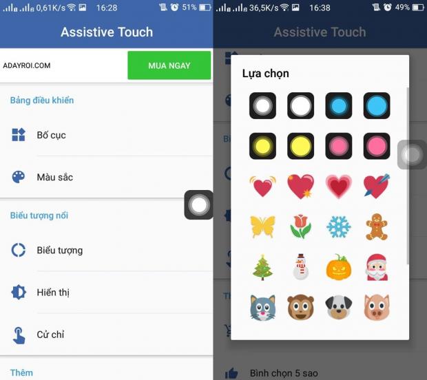 Bây giờ, bạn có thể tuỳ chỉnh bố cục, thay đổi số lượng biểu tượng, đổi màu, đổi icon nút home... tuỳ theo sở thích. Ngoài ra bạn cũng có thể điều chỉnh độ trong suốt, hay kích thước của icon.