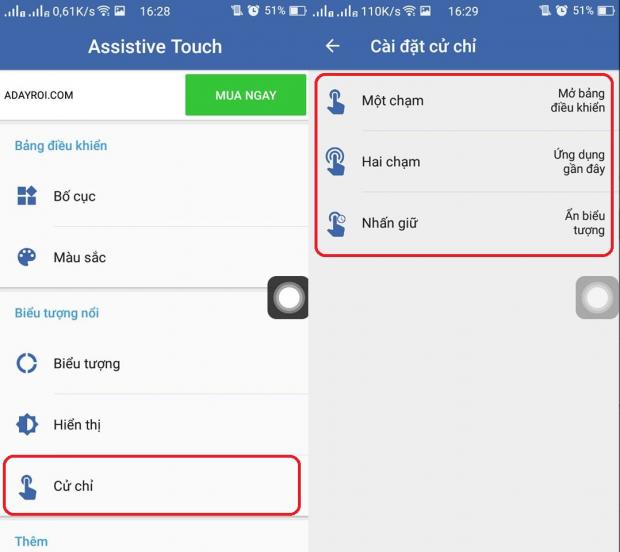 Bên cạnh đó Assistive touch còn hỗ trợ các cử chỉ thông minh như chạm để mở nhanh bảng điều khiển, hai chạm để mở các ứng dụng gần đây hoặc nhấn giữ để ẩn nút home ảo... Và bạn hoàn toàn có thể tinh chỉnh lại theo sở thích.