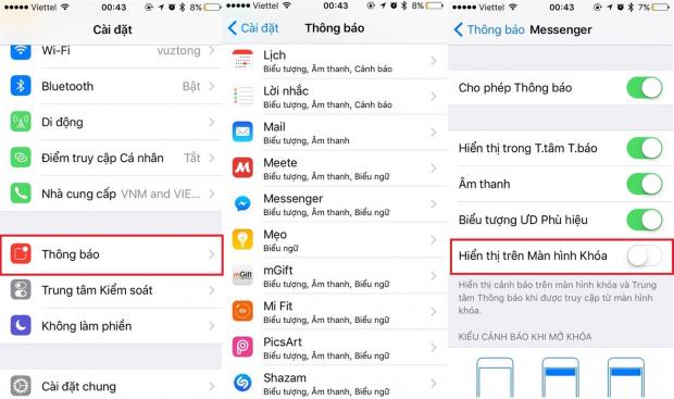 Nếu bạn không muốn người khác xem lén các tin nhắn hay các thông báo hiển thị từ màn hình khóa, bạn có thể tắt nó đi.