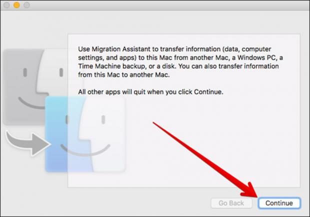 - Trên Mac cũ của bạn, bạn phải xác nhận sau đó lựa chọn Next - Tiếp tục.