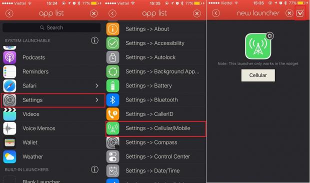 Ví dụ nếu muốn bật, tắt nhanh 3G trên thiết bị, hãy chọn App Launcher, tại đây hãy chọn mục Settings, và tìm tùy chọn Settings -> Cellular/Mobile.
