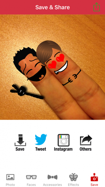 Ngoài ra, bạn còn có thêm các phụ kiện cho ngón tay thêm vui vẻ với các phụ kiện trong mục “Accessories”. Khi hoàn tất, bạn có thể chọn Save để lưu vào máy, hoặc chia sẻ hình ảnh này trực tiếp lên Twitter, Instagram hay các nơi khác.