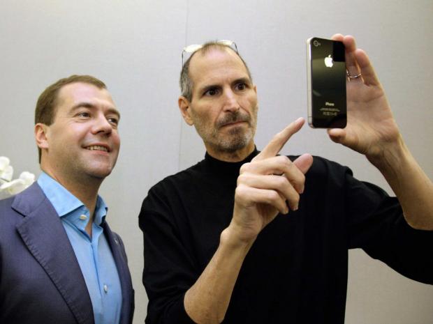 Trong khi Tổng thống Nga Putin nổi tiếng là một người nói không với điện thoại di động, ông Dmitry Medvedev lại là một fan cứng của Apple. Thủ tướng nước Nga từng là một trong những người đầu tiên được sử dụng iPhone 4 do đích thân Steve Jobs gửi tặng.