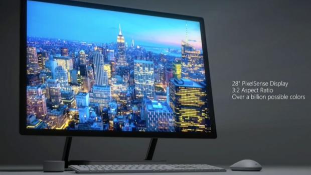 Surface Studio được trang bị màn hình LCD mỏng nhất thế giới khi đạt kích thước 12,5 mm với màn hình cảm ứng PixelSense và có vỏ bằng nhôm. Kích thước hiển thị 28 inch với tỷ lệ 3:2. Số lượng điểm ảnh trên màn hình Studio lên đến 13,5 triệu, nhiều hơn 63% so với một chiếc tivi 4K và điều này một phần nhờ sức mạnh của GPU Nvidia GTX 980M tích hợp sẵn bên trong.
