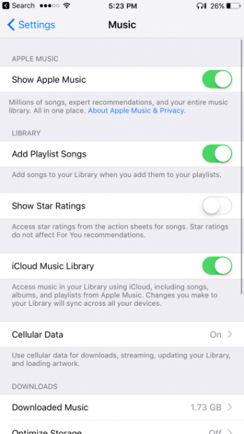 Thiết lập ứng dụng Music bổ sung tùy chọn Show Star Ratings cho phép hiển thị số sao đánh giá