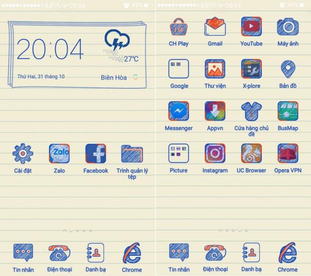 Đây là theme với các icon được thiết kế với phong cách như tranh vẽ, rất là ngộ nghĩnh để làm mới điện thoại của mình. Để cài đặt, bạn tài về theme tại đây: