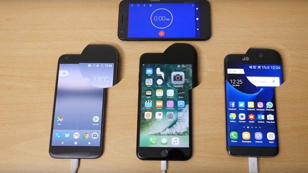 Mới đây tài khoản Youtube SuperSaf TV đã làm một bài so sánh thời gian sạc đầy pin của ba chiếc smartphone đang rất hot trên thị trường hiện nay là Pixel XL, iPhone 7 Plus và Galaxy S7 Edge, các sản phẩm sở hữu viên pin có dung lượng lần lượt 3.450 mAh, 2.900 mAh và 3.600 mAh.