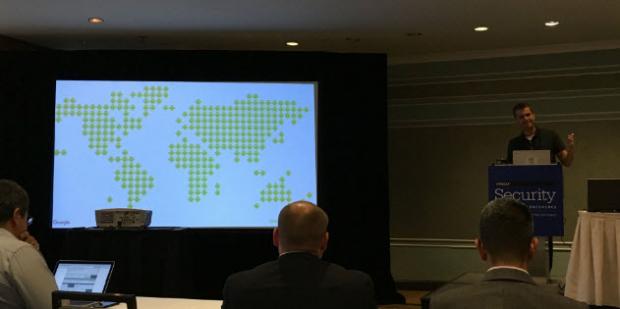Ông Adrian Ludwig trong hội thảo O’Reilly Sucurity hôm thứ 3 vừa rồi (1/11)Kết quả của những cuộc kiểm tra an ninh này, kèm theo các biện pháp hạn chế khai thác lỗ hổng trong Android khiến chỉ một số lượng rất nhỏ các thiết bị Android bị nhiễm phần mềm độc hại và theo lời Google thì đó là những “ứng dụng có khả năng gây hại – PHA”. Trên thực tế, theo biểu đồ ông Ludwig sử dụng trong buổi trao đổi hôm đó, chỉ có chưa tới 1% smartphone Android bị nhiễm malware.