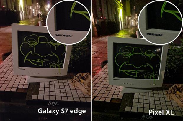 Camera chính trên Galaxy S7 edge là 12 MP sử dụng cảm biến 1 / 2.5 inch với khẩu độ f / 1.7, công nghệ DualPixel. Đối với Google Pixel XL thì camera chính của máy có độ phân giải 12,3 MP, kích thước điểm ảnh 1,55 mm và khẩu độ f / 2.0, công nghệ lấy nét PDAF và cảm biến laser LDAF. Dưới đây, bạn có thể thấy các hình ảnh chụp giữa 2 smartphone này khi đặt cạnh nhau. Đây đều là các smartphone có khả năng chụp ảnh ấn tượng nhất hiện nay.