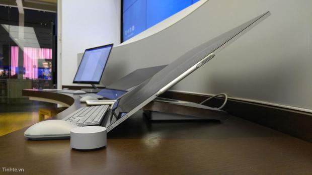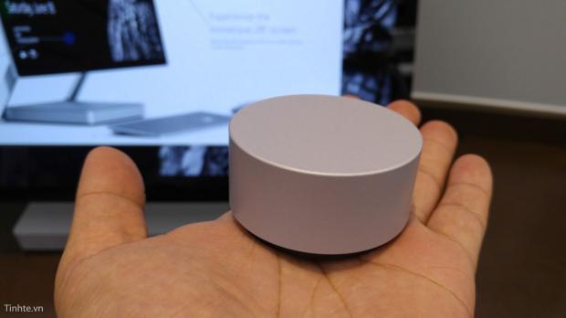 Còn đây là Surface Dial và nó có thể nằm trên bề mặt của Surface Studio nếu nó không quá nghiêng.