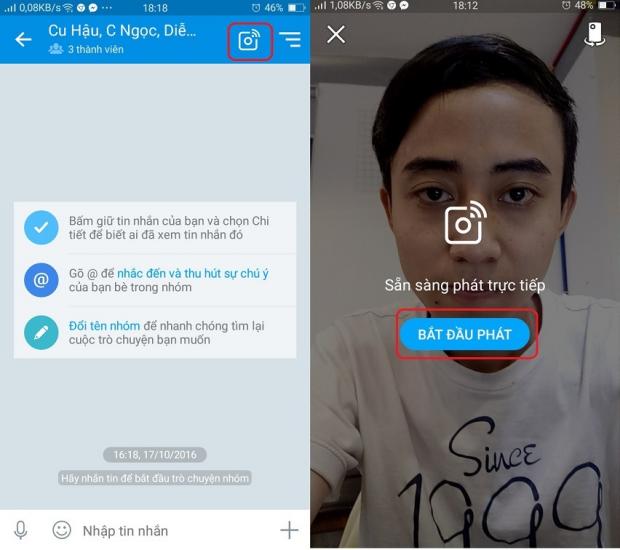 Hiện nay, bạn có thể live stream trực tiếp với những bạn bè trong nhóm khi chat Zalo. Người dùng chỉ cần nhấn vào icon trên góc phải và chọn Bắt đầu phát.