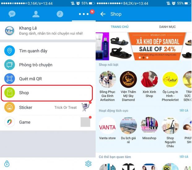Zalo có một lượng người dùng đông đảo nên đây là một mảnh đất màu mỡ cho những bạn thích kinh doanh buôn bán. Khi bạn nhấp vào biểu tượng 'ba chấm' trên góc phải màn hình sẽ thấy có thêm mục Shop. Vào đây bạn sẽ thấy có rất nhiều sản phẩm, mặt hàng khác nhau được bày bán.