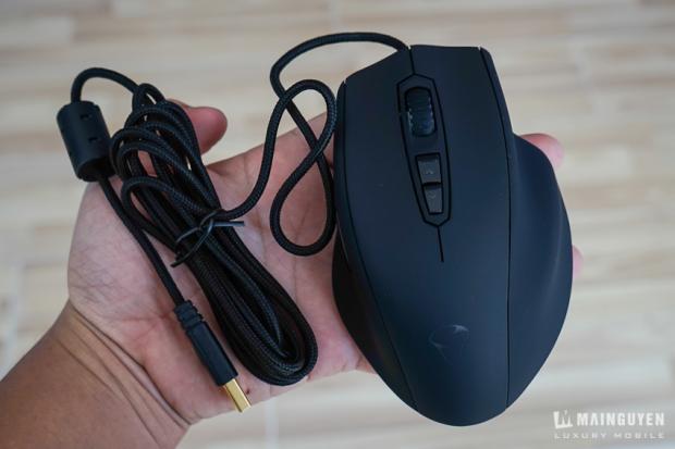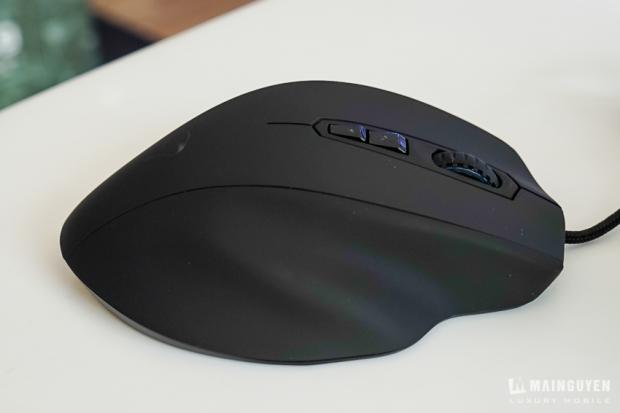 Naos 3200 có thiết kế kiểu dáng công thái học nên sẽ cực kỳ thoải mái khi sử dụng, cả 5 ngón tay sẽ đều được đặt lên chuột để tạo cảm giác cực kỳ thoải mái trong quá trình chơi game nhiều giờ liền. Với thiết kế này, tay của bạn sẽ ôm chuột hơn và nói không ngoa khi đây là con chuột chơi game cho mình cảm giác cầm thoải mái nhất. Lúc đầu khi mới sử dụng, do phần đệm cao su trên cùng của Naos 3200 còn khá mới nên bạn dễ bị tuột tay, nhưng sau khoảng 2-3 ngáy sử dụng, tay bạn sẽ bám hơn. Phía grip phải là vị trí đặt 2 ngón áp út và út khi sử dụng chuột. Naos 3200 sở hữu 7 nút khác nhau để bạn có thể cài đặt tùy biến tối đa tính năng, hai phím back/foward ở cạnh ngón cái bấm rất tiện. Bạn có thể chuyển 3 chế độ DPI khác nhau ngay khi đang chơi game mà không cần phải quay lại màn hình thiết lập để chọn lựa. Tất cả các nút đều dùng switch Omron Nhật.