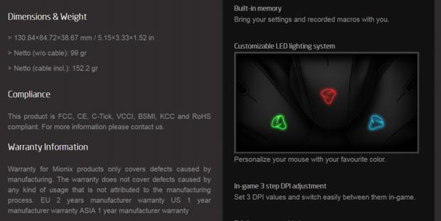 Logo của Mionix sẽ phát sáng theo 3 màu RGB cơ bản