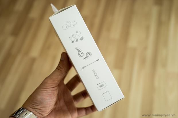 Hộp đựng gọn gàng với các chi tiết của tai nghe ở mặt trước