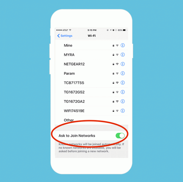 Bằng cách không cho phép iPhone tự kết nối với mạng Wi-Fi, người dùng có thể cải thiện một chút tốc độ máy. Vào Settings > Wi-Fi và bật mục Ask to Join Networks.