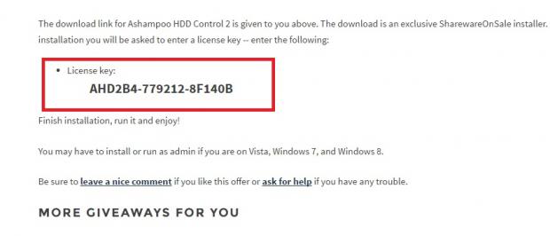 Bước 2: Ashampoo HDD Control 2 sẽ tiến hành tải về và trang web sẽ cung cấp cho bạn 1 dãy số, hãy lưu nó lại nhé.