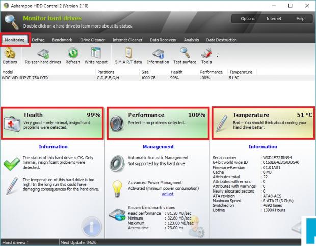 Vì thế, hãy thường xuyên khám sức khỏe định kỳ cho ổ cứng của mình bằng công cụ Ashampoo HDD Control 2 để có kế hoạch phòng ngừa trước những hư hỏng không mong muốn.