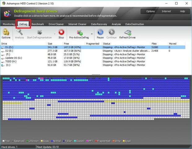 Đây là công cụ giúp bạn kiểm tra độ phân mảnh dữ liệu của ổ cứng, nếu các chỉ số càng cao thì tốc độ của ổ cứng sẽ giảm đáng kể.