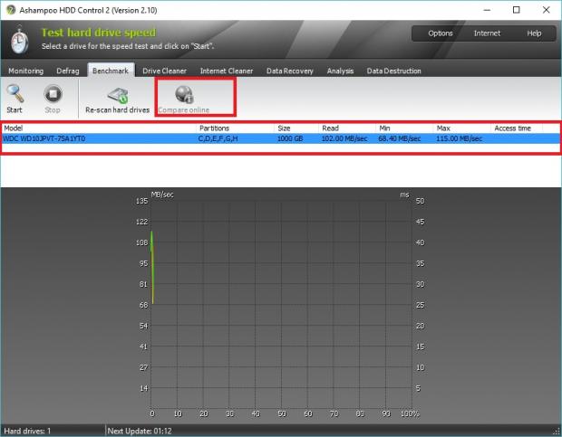 Với công cụ này bạn có thể kiểm tra tốc độ đọc ghi của ổ cứng nhằm đánh giá cơ bản về tình trạng sức khỏe của ổ HDD của bạn.