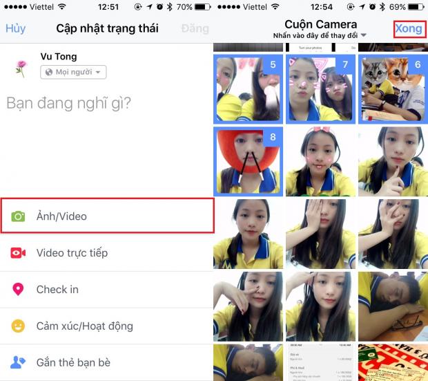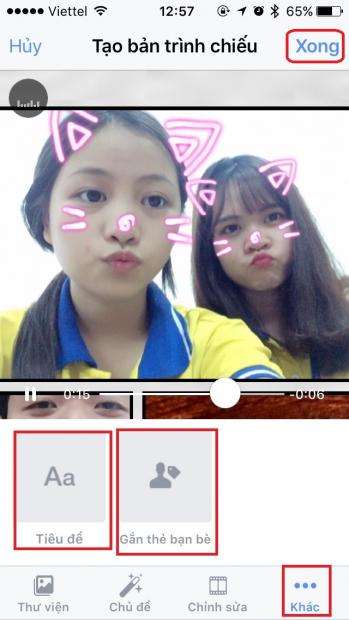 Hay Khác, người dùng được cung cấp 2 tính năng nhỏ với lựa chọn này. Bạn có thể thêm tiêu đề cho từng bức ảnh xuất hiện hoặc gắn thẻ bạn bè. Sau khi hoàn tất chỉnh sửa, chọn Xong để xuất video quay lại giao diện cập nhật trạng thái.