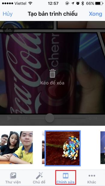 Chỉnh sửa, bạn có thể dịch chuyển các bức hình với nhau nếu muốn bức hình nào xuất hiện trước.