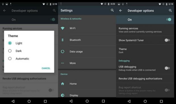 Giao diện với chủ đề màu tối cũng từng có mặt trong bản Previews đầu tiên của Marshmallow. Tuy nhiên, chúng đã bị cắt giảm khi Marshmallow chính thức ra mắt. Do đó, Android N được kỳ vọng sẽ sở hữu tính năng này.